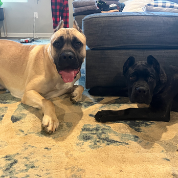 Amadio "Amo" comes from Fortuna Cane Corso out of California. He is AKC and ICCF registered and comes from great bloodlines. His father is AKC GCH Chxanto Custodi Nos "Apollo" who is a blue (Gray) brindle and his mother is a Black Brindle, both with 50% of ancestors being ICCF/AKC Champions.